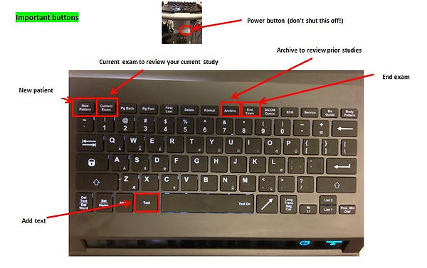 5) To end the exam, hit the keyboard button “EndExam” (top row, middle), or hit the “Patient” button